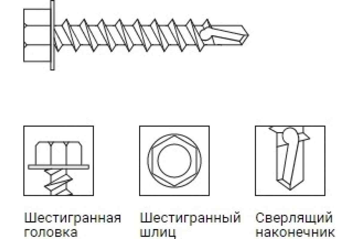 Винт самонарезающий со сверловым концом и шестигранной головкой HEX