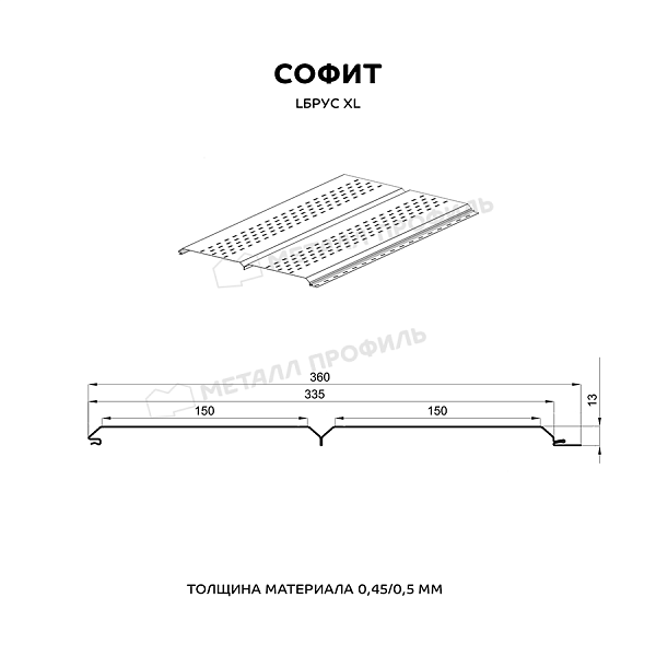 Софит МЕТАЛЛ ПРОФИЛЬ перфор. Lбрус-XL-14х335 NormanMP (ПЭ-01-8017-0.5)